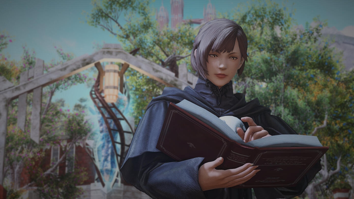 being one of amaurot's most dedicated archivists, nuntia mostly worked behind a desk all day, recording information that would help future generations on etheirys. her work would eventually lead her to often assist azem when they'd come back from traveling and keep track of their findings. she first started working for azem when venat was still holding the seat, and thus a friendship quickly developed between the two.because of the nature of her work, she strongly believed information should be easily accessible and public, to the dismay of some members of the convocation, however, there was one important secret she was forced to keep to herself.during an emergency work trip, the current azem asked nuntia to wait for them in the outskirts of amaurot, as they would soon come back, having gathered interesting information for the archivist to record. it was night time, she was alone and everything was quiet, the city being way past her at this point. she was surrounded by tall trees and the moon glowing above her.this is when she first saw genesis, the goddess of creation, first presenting herself as a vague shadow figure. not showing a sign of fear—moreso curiosity, she approached the strange being, asking them “what can you be?” out loud.for once since the beginning of existence, one of genesis' creations was able to see her, against all odds. and she understood her too, as nuntia clearly recognized the words: “i'll help you remember”.over the course of the next few months, what started as a casual meeting with azem for work-related reasons turned into regular secret meetings with someone who claims to be the goddess responsible for every creation—life and death, on etheirys, and whose very existence has somehow escaped everyone's minds for some unexplainable reason.but it wasn't possible, was it? of something—anything not being documented.it was her responsibility to make genesis' existence known to all. the convocation would want to know this... if only this was this simple. if only the idea of a mortal falling for a god wasn't part of the equation, and if only she wasn't trying to convince her to leave godhood to be with her and live together, which would potentially endanger the state of the star.