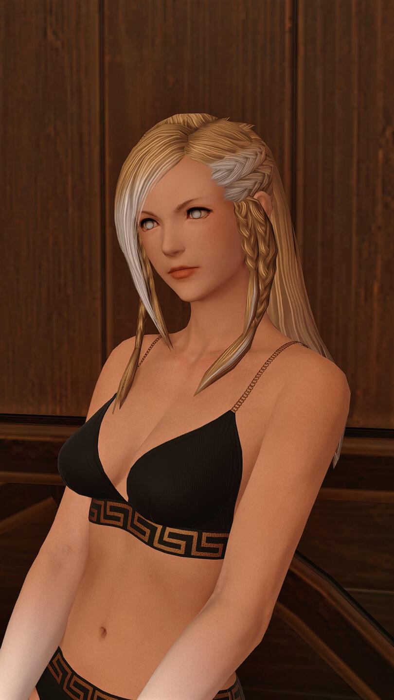 half goat, half-human(but because she's the only one of her kind, people just assume she's some sort of unusual hyur or padjal blessed by the elementals (because of her animalistic features)).physical attributes: 6'0", freckles all over the body,